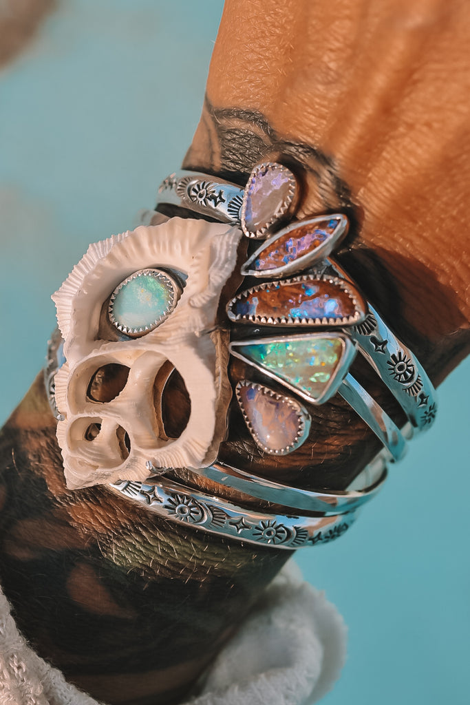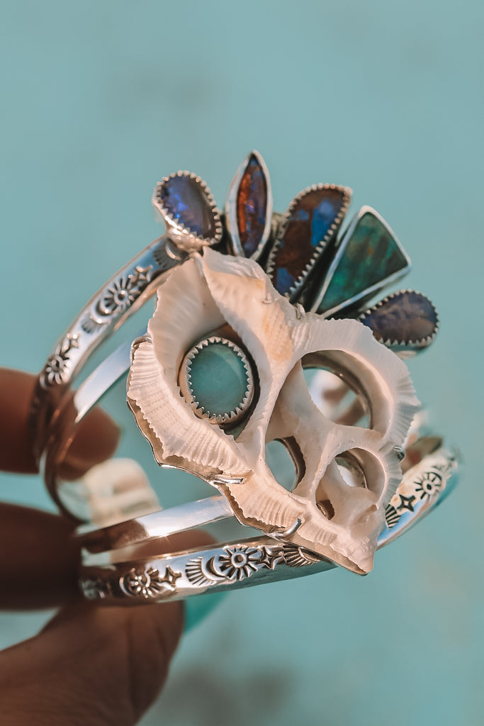 Calling all mermaids! Sliced shell featuring a spray of gorgeous australian pipe opals will be sure to steal your heart