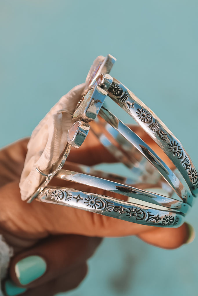 MEASUREMENTS: cuff is 5.5" with a 1" gap. Cuff is slightly adjustable