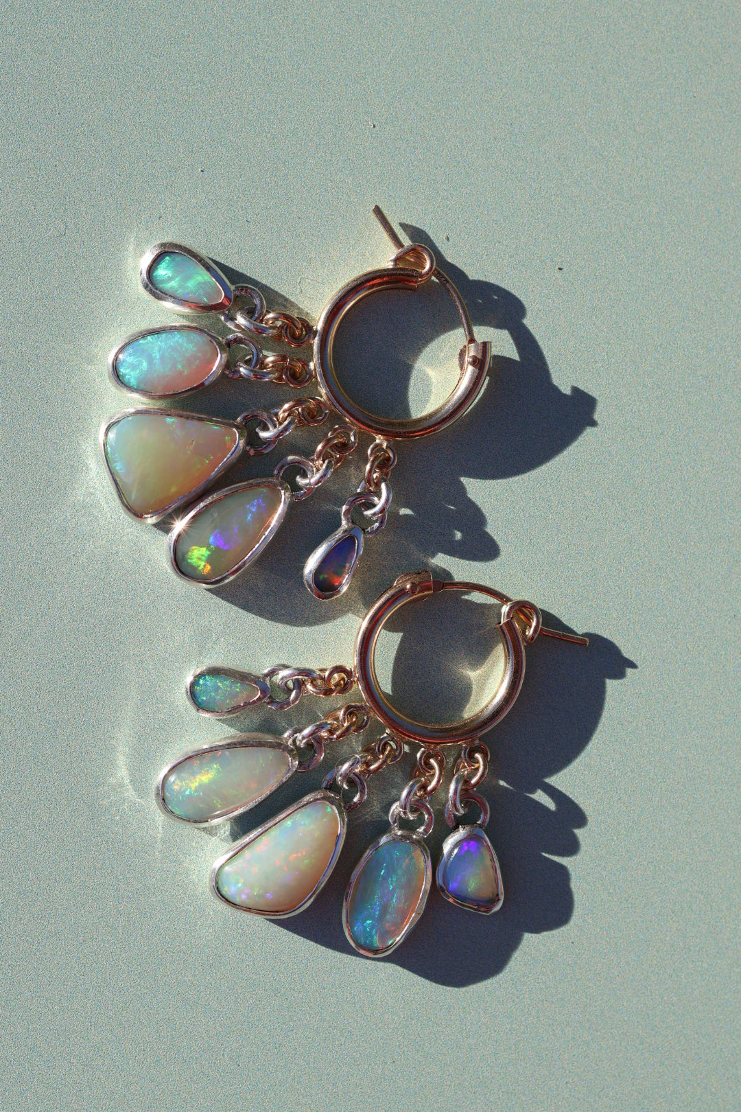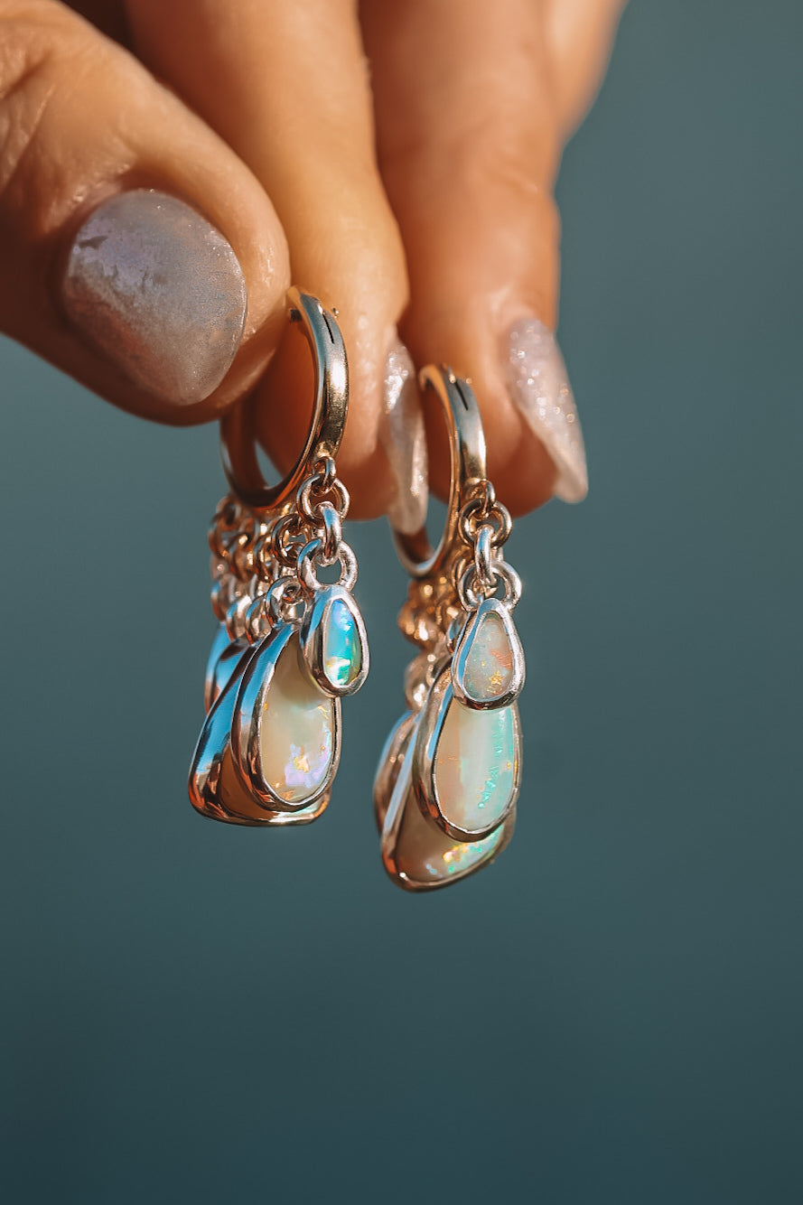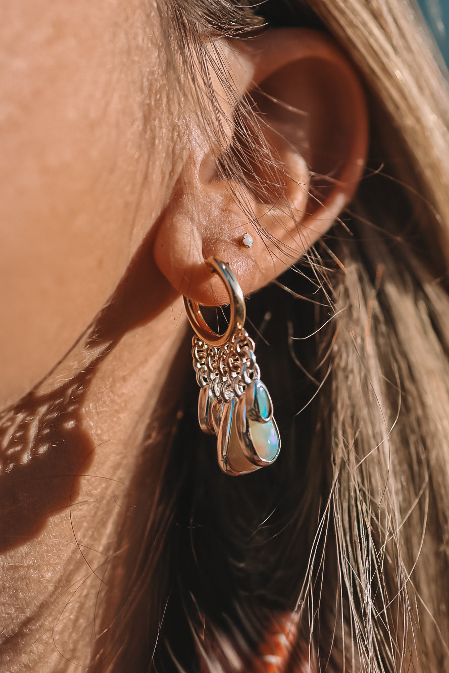 These timeless mixed-metal hoops feature crystal opals set in sterling silver. A fresh modern balance of shine and color and layered all together for a punch! The backs of the bezels are sawn out to let light through the opals & reduce weight.