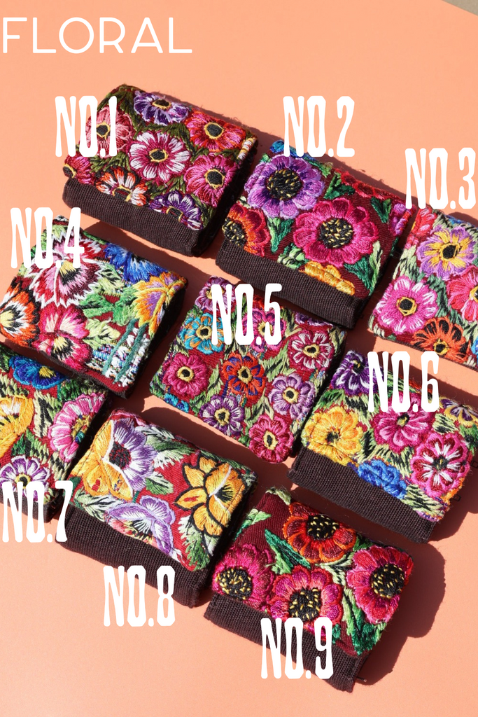 These one of a kind jewelry wraps are crafted from recycled Mayan embroidered tapestries. Each one is unique and features 5 zipper pockets with transparent fronts to easily see its contents.