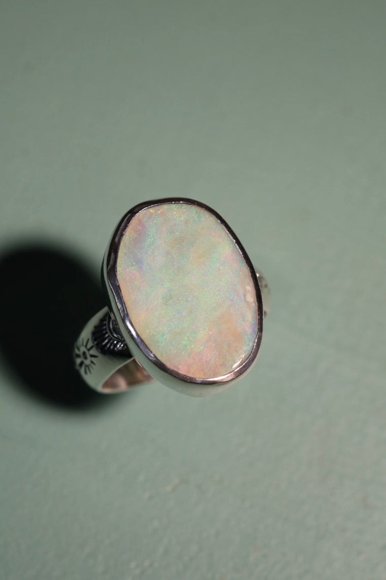 Letting the opal do all the talking here. Insane solid Australian opal set on a chunky hand stamped rounded band.