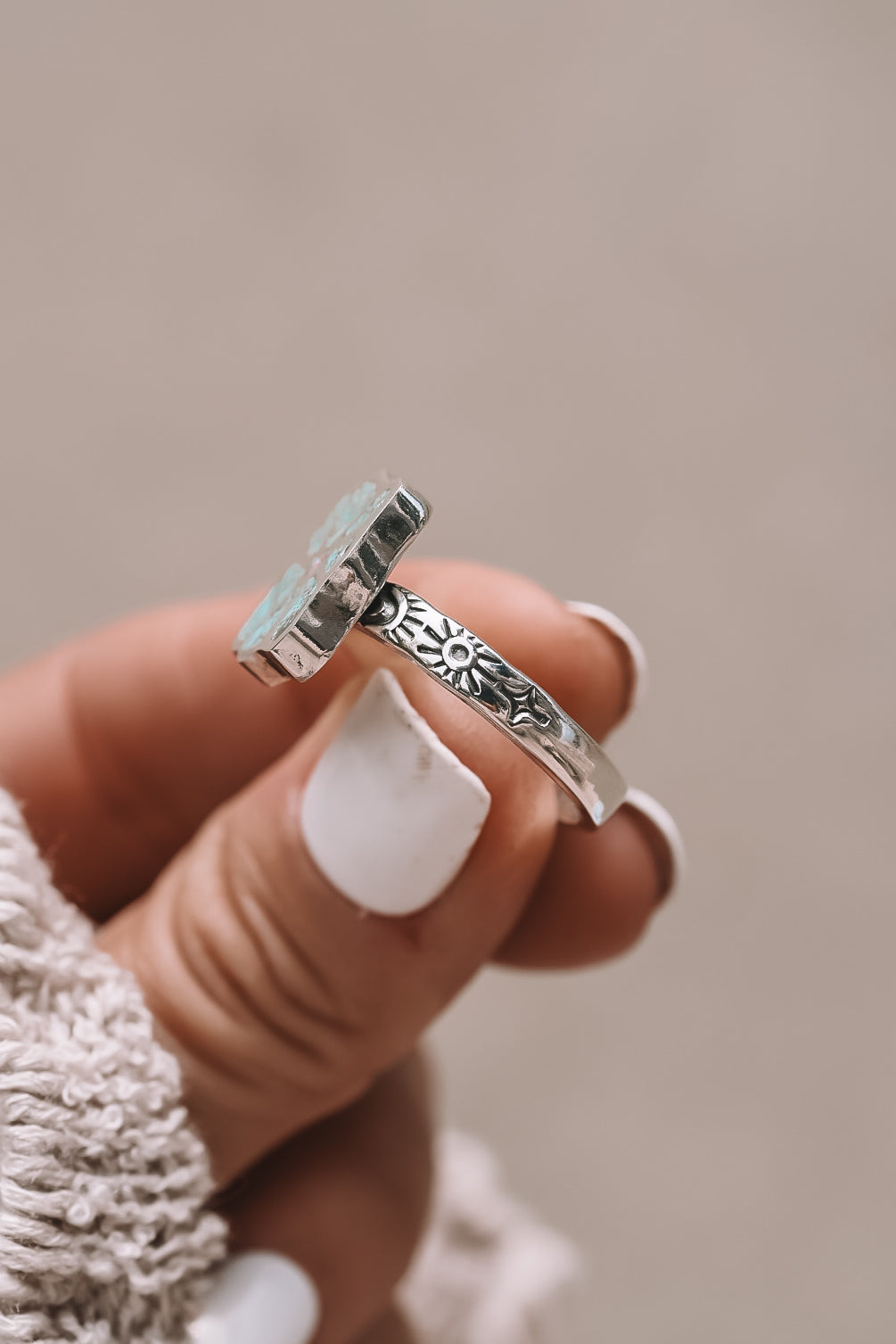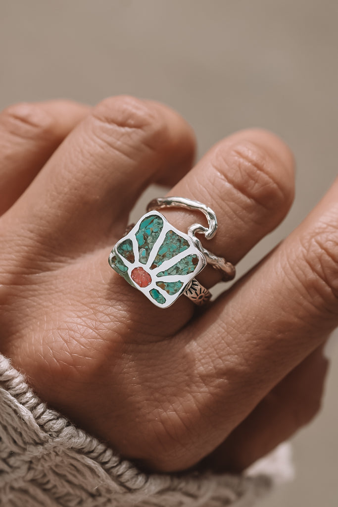 These everyday rings are perfect worn solo for a subtle touch or mix n match them with your favorite bands for an effortlessly chic vibe! Originally hand carved from wax and then cast to silver and inlaid with natural stones