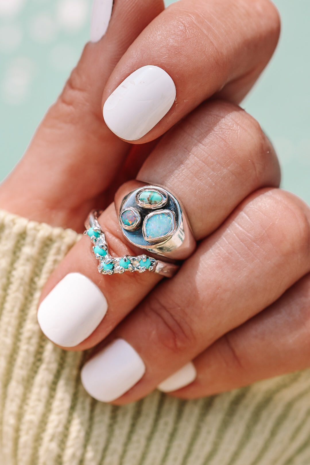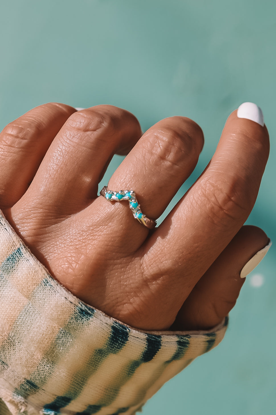 Hand carved stacking ring giving all the coastal cowgirl vibes with a drop of turquoise. Ive already added one to my wedding stack.... just sayin!!