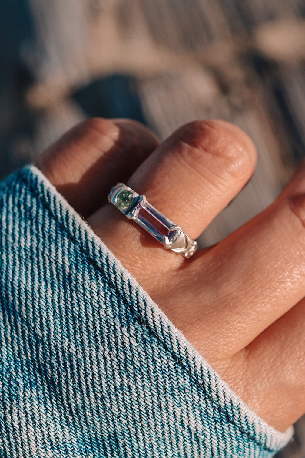 Hand carved one by one, these rings are set with vibrant sapphires and finished with a mix of organic texture and geometric patterning. Each ring is a small wearable sculpture, imperfect, intentional and entirely one of a kind!