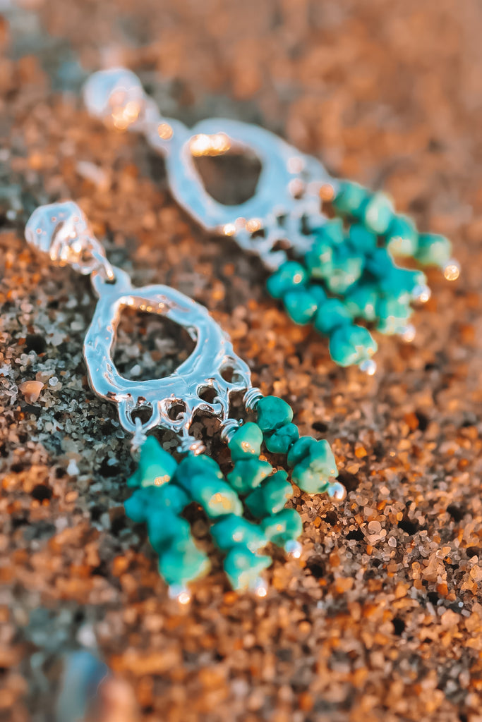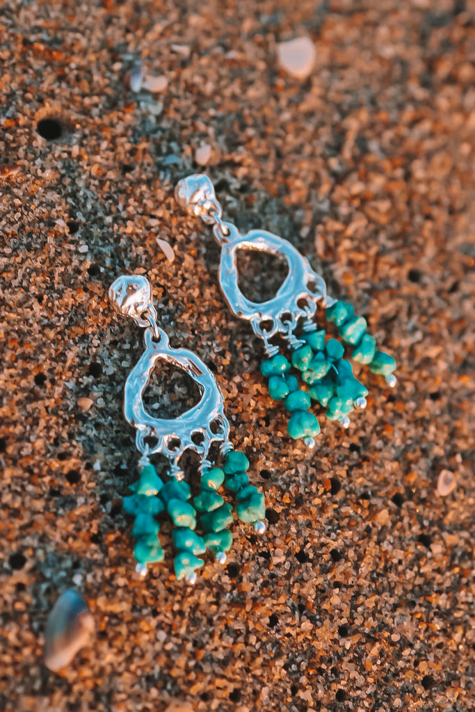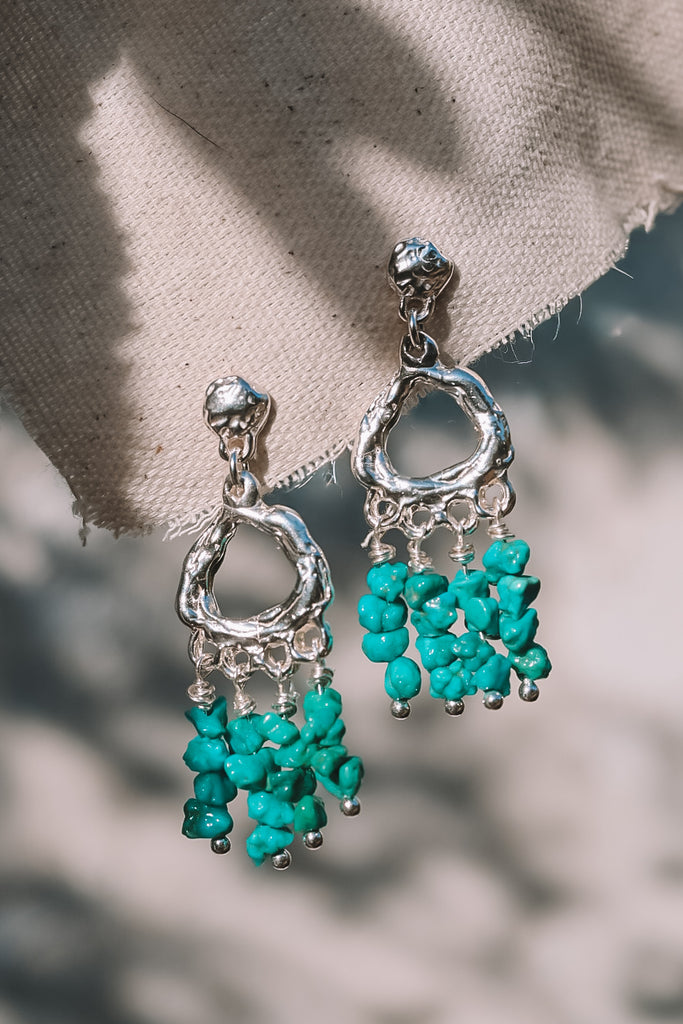 Organic, sculpted from wax and casting with clusters of natural turquoise nuggets. Lightweight, textural and made to add an effortless pop of color to any of your looks