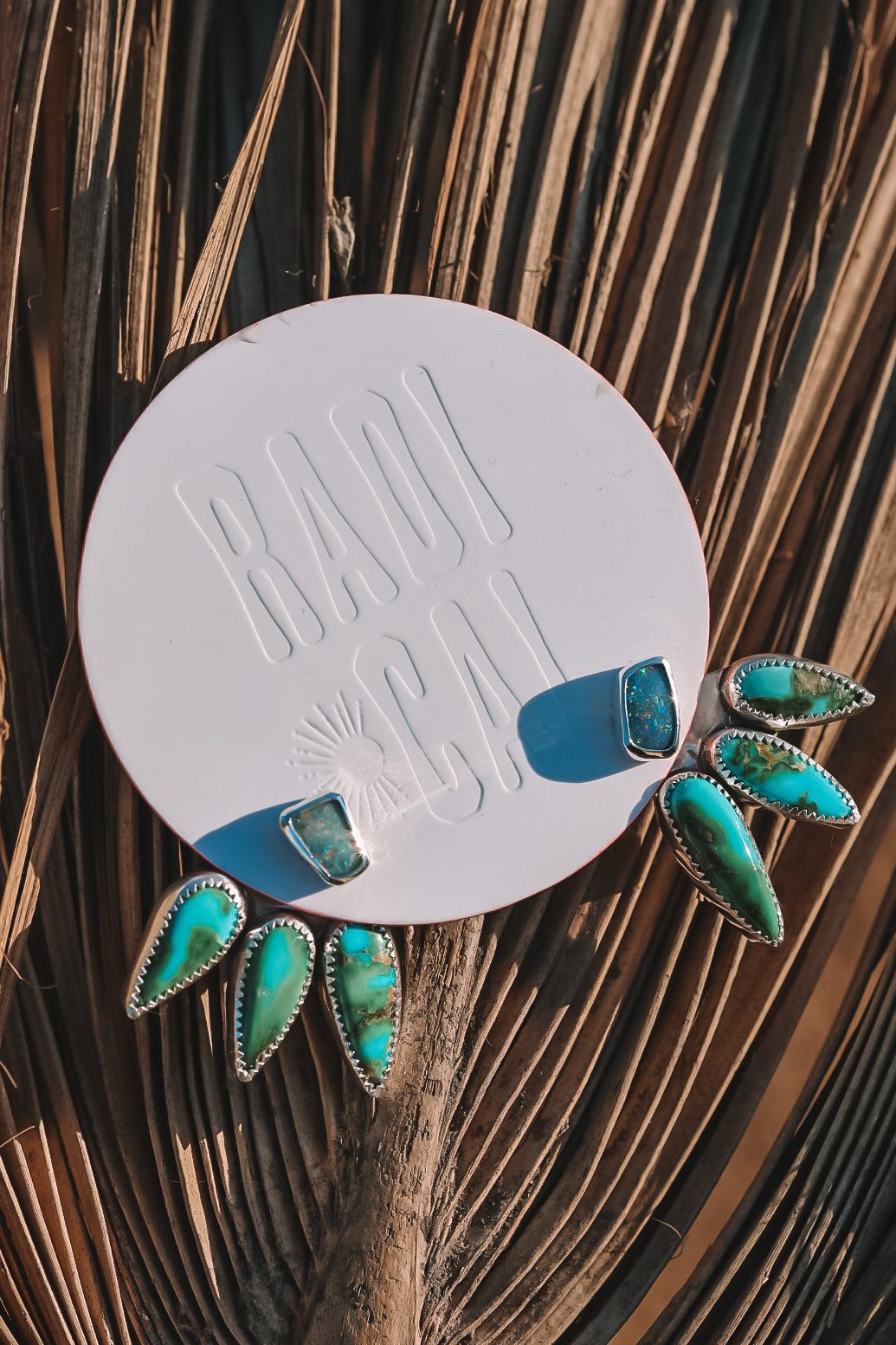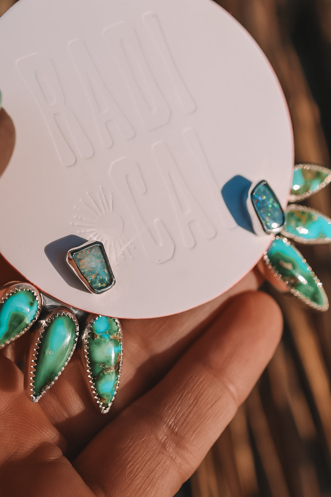 STONE: Sonoran mountain turquoise with opal doublet studs