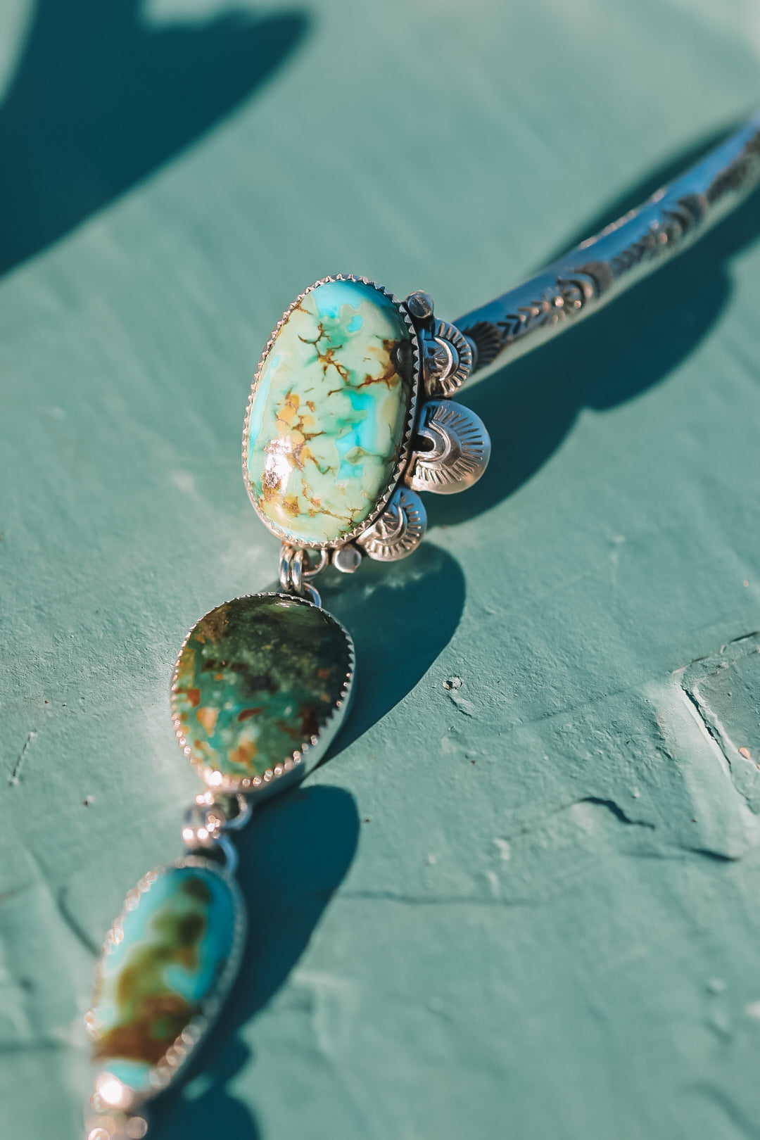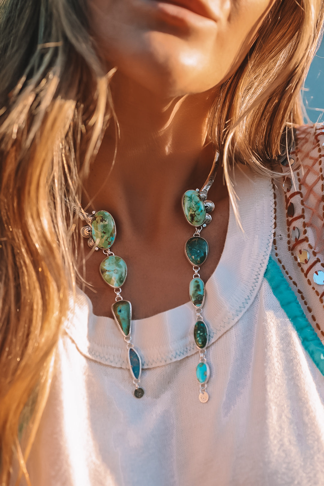 A fun spin on a tradition necklace. Featuring a asymmetrical design of a waterfall of stones. Perfect for my brides, a night out or wear it around the house to feel like the queen you are!