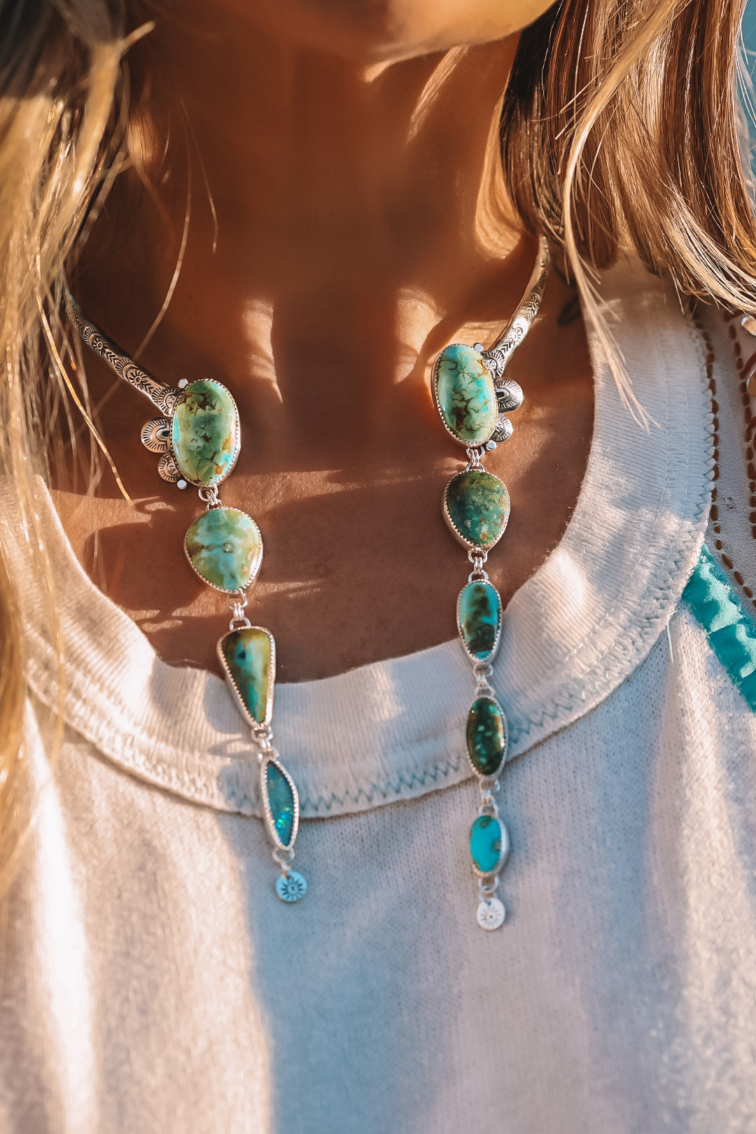 MEASUREMENTS: Necklace cuff measures about 13" with a 2"-3" gap. Necklace is slightly adjustable