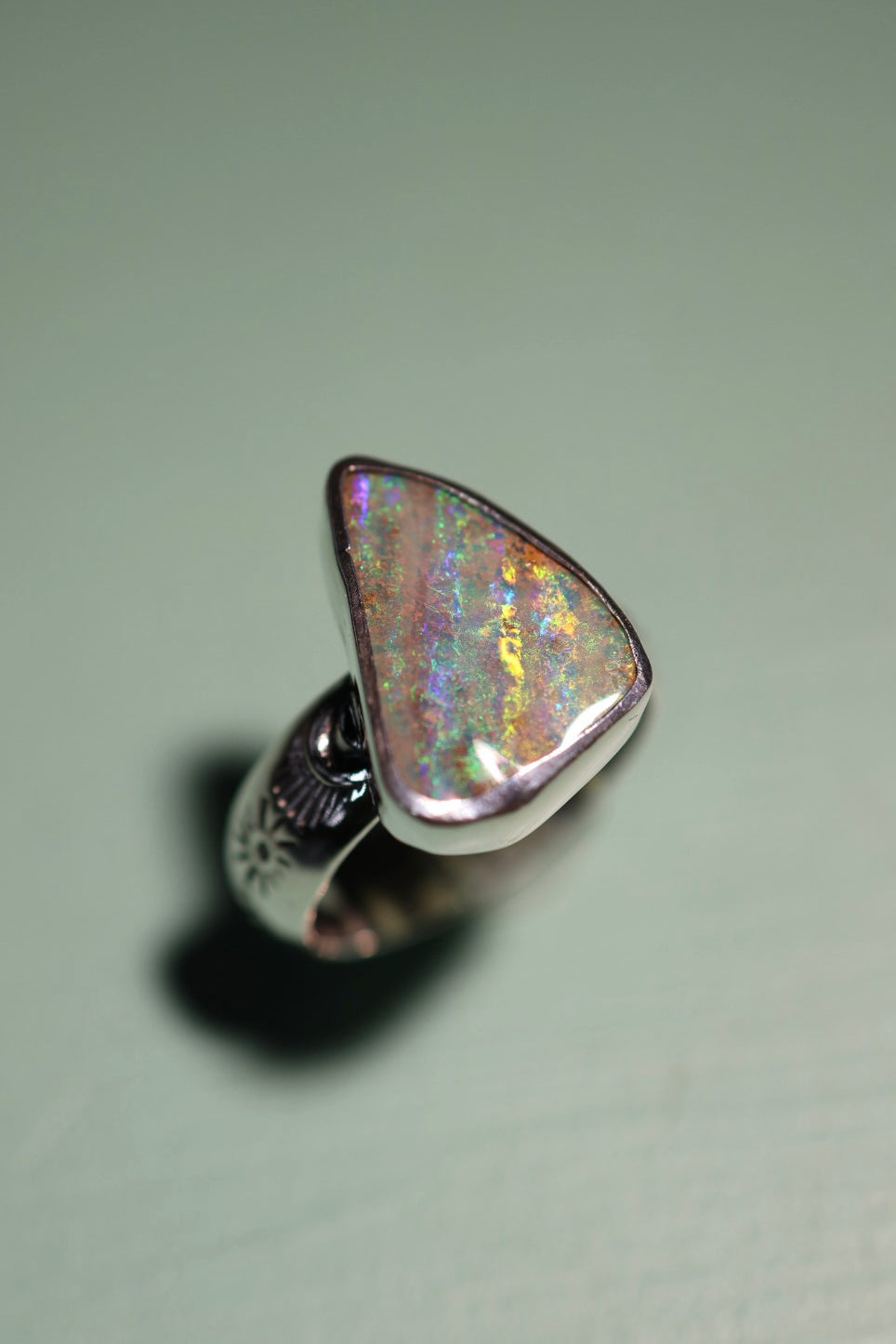 Letting the opal do all the talking here. Insane solid Australian opal set on a chunky hand stamped rounded band.