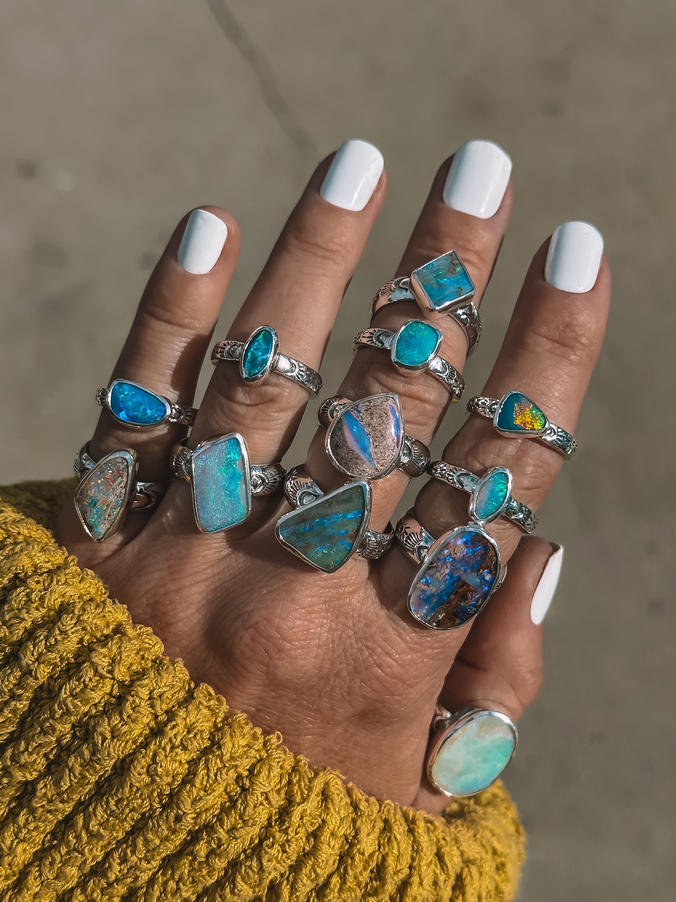Letting the opal do all the talking here. Insane solid Australian opal set on a chunky hand stamped rounded band.