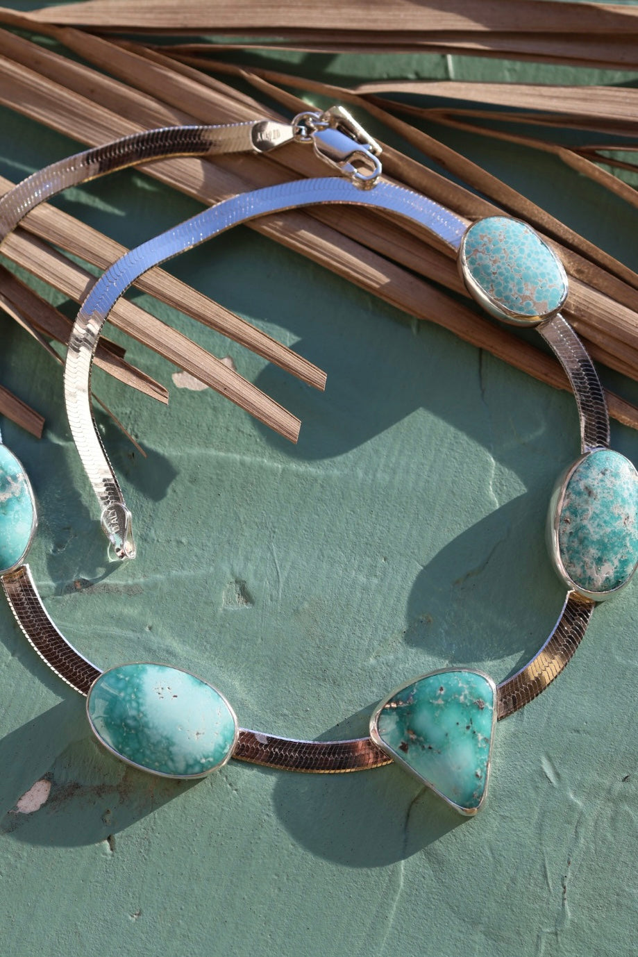 MEASUREMENTS: 14" chain with various sizes of turquoise. If you would like a chain extender added, please let me know BEFORE your order ships and I'm happy to throw one in for you. I can do 1", 2", or 3". If you would like an extender please email me at info@radicaljewelryco.com. If you need an extender after your receive your necklace they are available for purchase in my shop listed under "SHOP ALL"