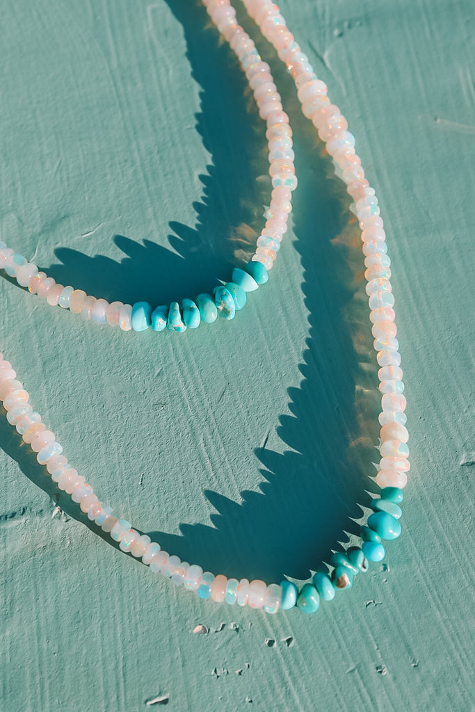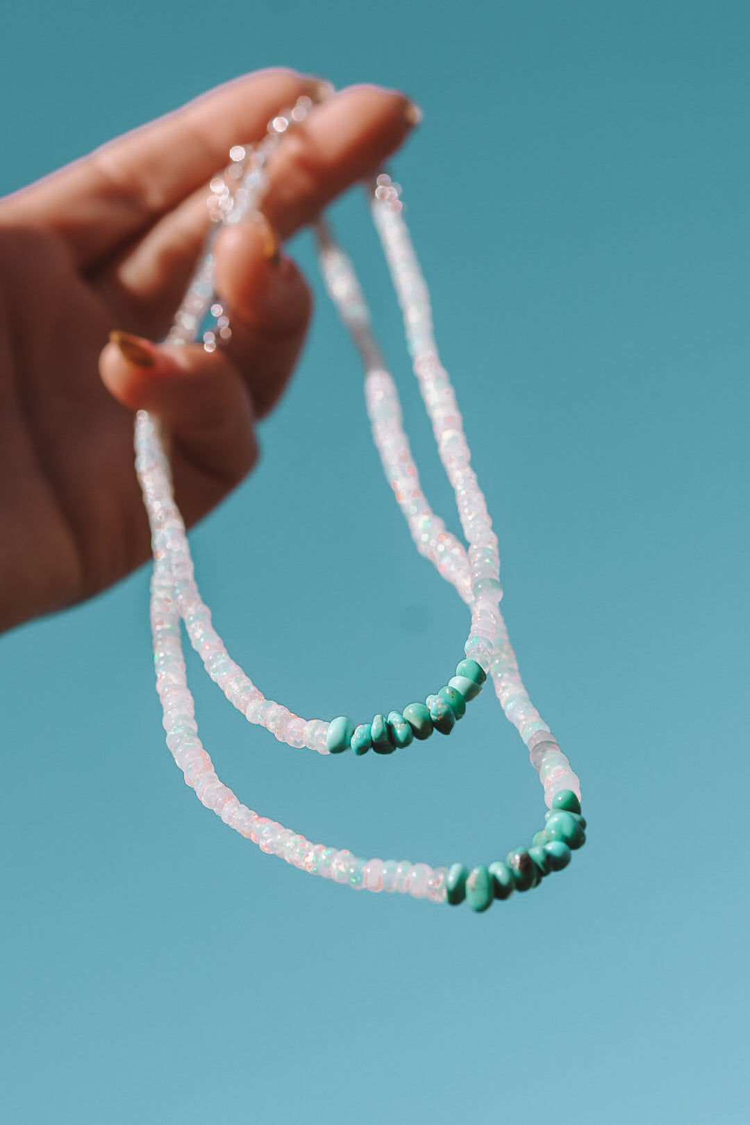Little bit mermaid, little bit rodeo. The perfect little pop of classic turquoise and opal. Absolutely timeless! opals should not get wet!