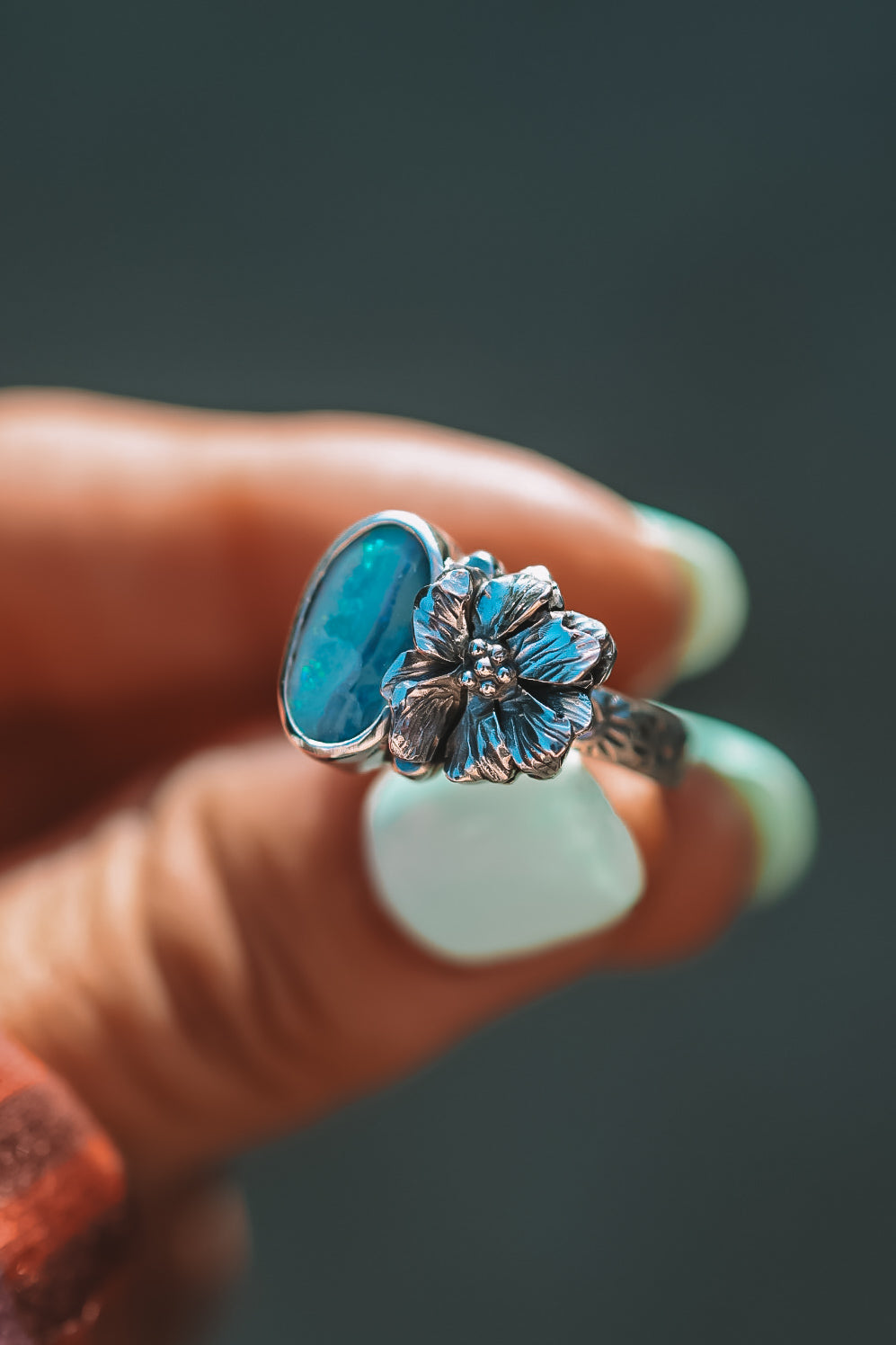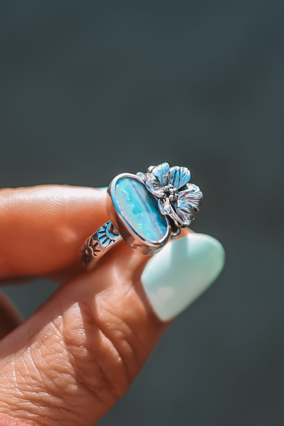 Each ring feels like a daydream made solid! Gorgeous stones cradled in hand-forged blooms. Soft & feminine, yet full of strength & light. Little worlds that catch the sun and hold their own kind of magic!