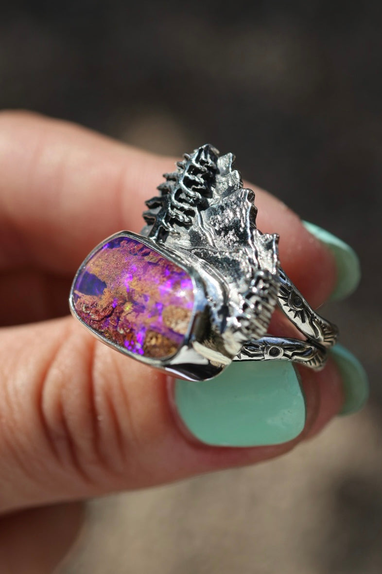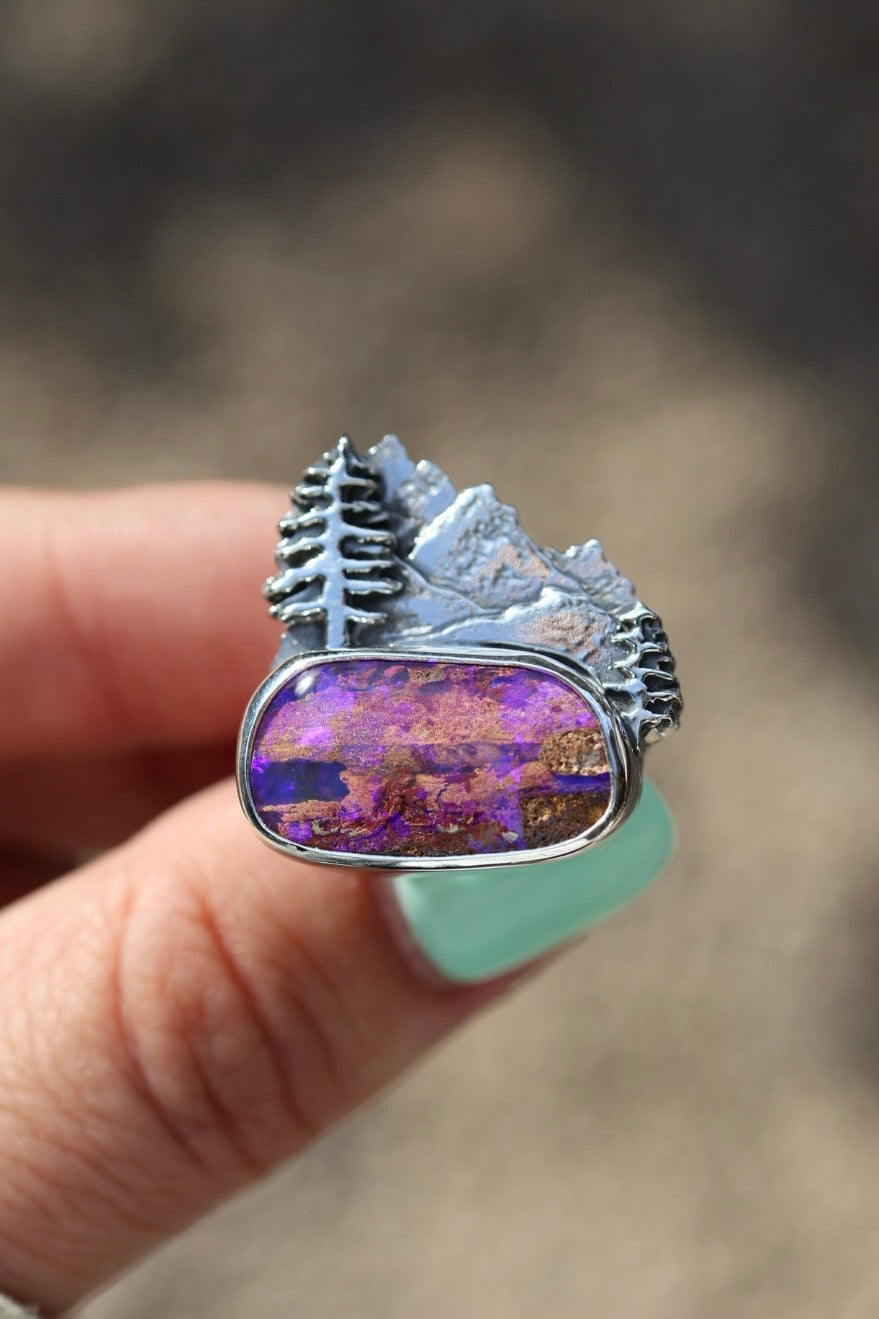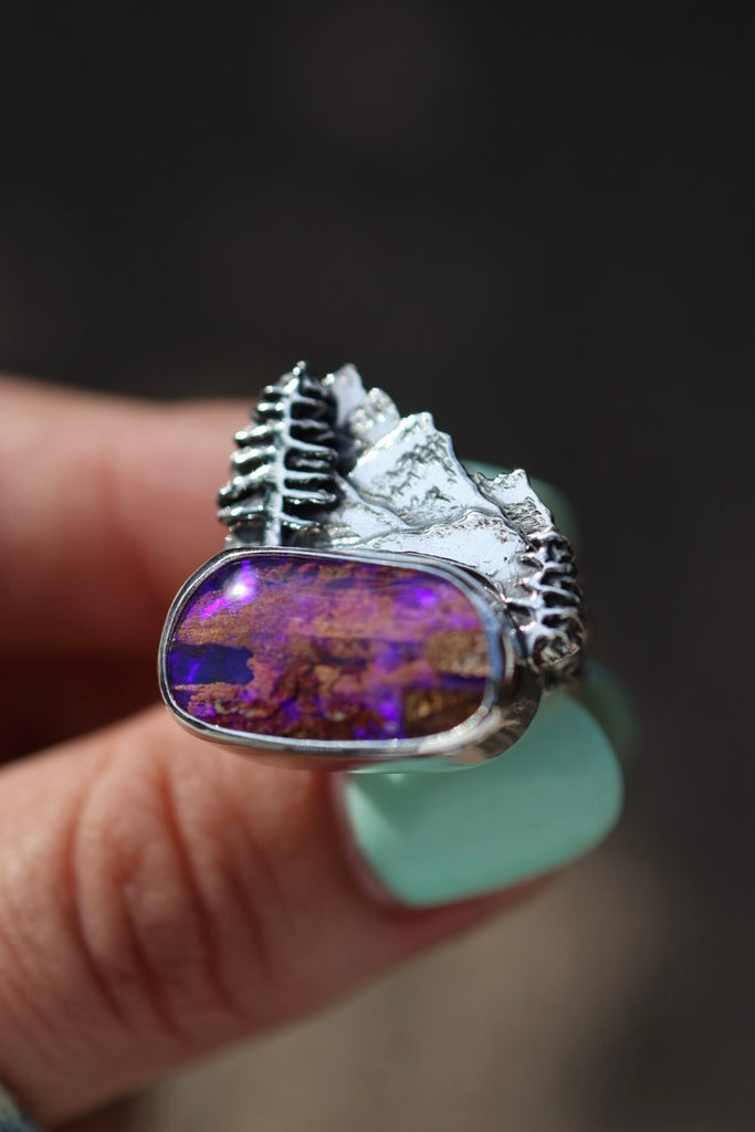 Miniature landscapes forged by hand and lit by opal skies. Each ring tells a story of wanderlust, wild beauty & light!