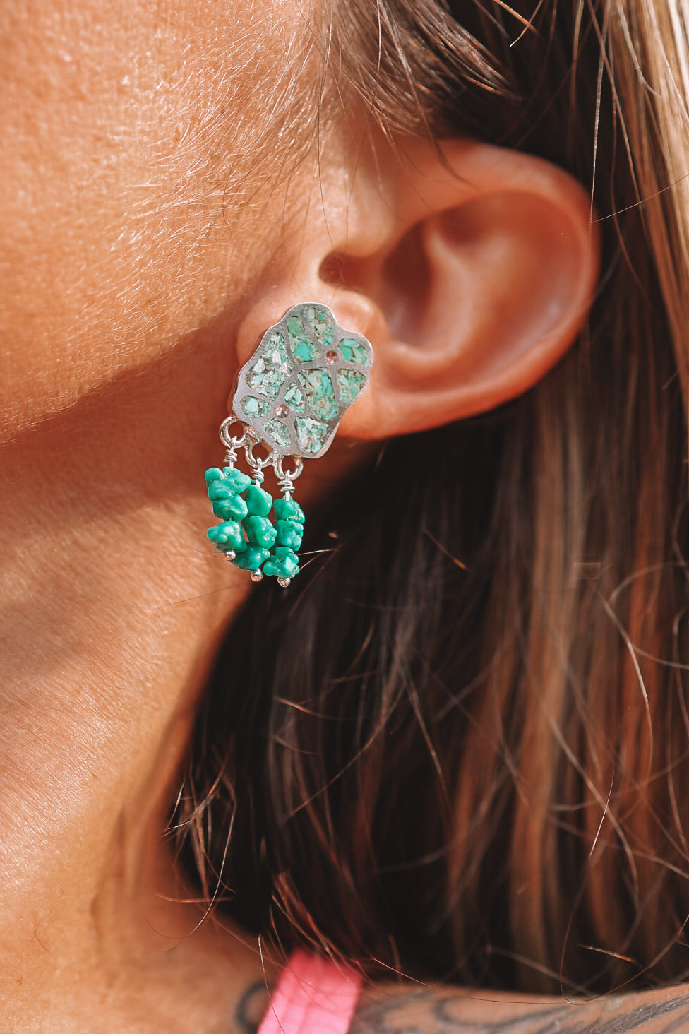 Hand carved vibey florals in wax thats then casted into sterling silver. Featuring colorful inlay that give all the funky beachy vibes! polished to high shine perfection!